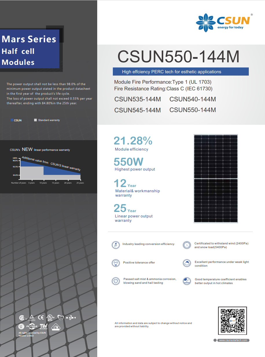 Module Fire Performance:Type 1 (UL 1703)